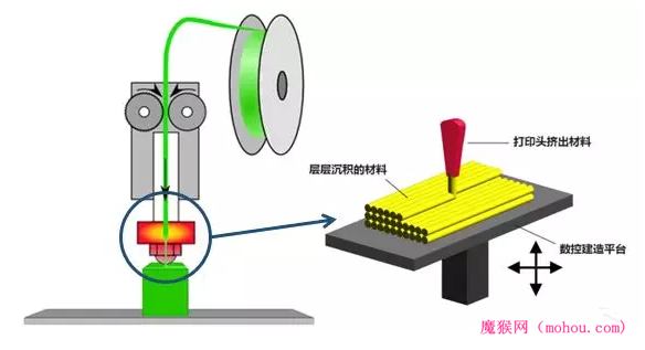 目前陶瓷3D打印成型技術(shù)主要可以分為噴墨打印技術(shù)(IJP)、熔融沉淀技術(shù)(FDM)、分層實(shí)體制造技術(shù)(LOM)、選擇性激光燒結(jié)技術(shù)(SLS) 和立體光固化技術(shù)(SLA)等。 使用這些技術(shù)打印得到的陶瓷坯體經(jīng)過(guò)高溫脫脂和燒結(jié)后便可得到陶瓷部件。根據(jù)成型方法和使用原料的不同,每種打印技術(shù)都有自己的優(yōu)缺點(diǎn),發(fā)展程度也有差距。 1熔融沉積造型(FDM) 熔化沉積造型法由美國(guó)學(xué)者Scott Crump于1988年研制成功,其以熱塑性絲狀為原料,絲通過(guò)可在X-Y方向上移動(dòng)的液化器熔化后噴頭噴出,根據(jù)所涉及部件的每一層形狀,逐條線(xiàn)、逐個(gè)層的堆積出部件。FDM使用的原材料有聚丙烯、丙烯腈-丁二烯鑄造蠟質(zhì)等。