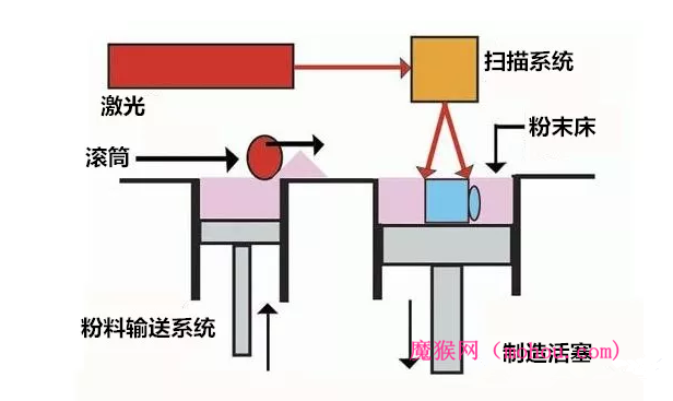 3DP具有能夠大規(guī)模成型出陶瓷部件,成本較低的優(yōu)勢(shì),但也具有黏結(jié)劑黏合強(qiáng)度受限導(dǎo)致部件強(qiáng)度有限,難以得到機(jī)械性能優(yōu)良的陶瓷器件的劣勢(shì)。 5激光選區(qū)燒結(jié)/熔融(SLS/SLM) SLM 的思想最初由德國(guó)Fraunhofer研究所于1995年提出,SLS和SLM原理與三維印刷技術(shù)較類(lèi)似,將粘接劑換為激光束。在高功率比重激光器激光束開(kāi)始掃描前,水平鋪粉輥先把金屬粉末平鋪到加工室的基板上,然后激光束將按當(dāng)前層的輪廓信息選擇性地熔化基板上的粉末,加工出當(dāng)前層的輪廓,然后調(diào)入下一圖層進(jìn)行加工,如此層層加工,直到整個(gè)部件加工完畢。