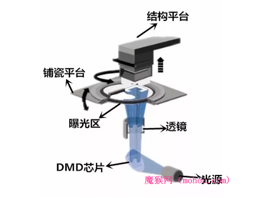 SLS/SLM工藝使用的一般是塑料、蠟、陶瓷、金屬或其復(fù)合物的粉末,其具有無(wú)需支撐即可制備復(fù)雜陶瓷部件的優(yōu)點(diǎn),但也存在因受到粘接劑鋪設(shè)比重的限制導(dǎo)致陶瓷制品致比重不高的問(wèn)題。 6光固化快速成型技術(shù)(SLA) SLA技術(shù)是通過(guò)激光的掃描曝光實(shí)現(xiàn)單層的固化。通過(guò)紫外激光束,按照設(shè)計(jì)好的原件層截面,聚焦到工作槽中的陶瓷光敏樹(shù)脂混合液體,逐點(diǎn)固化,由點(diǎn)及線(xiàn),由線(xiàn)到面。通過(guò)xy方向固化成面后,通過(guò)升降臺(tái)在z軸方向的移動(dòng),層層疊加完成三維打印陶瓷部件。