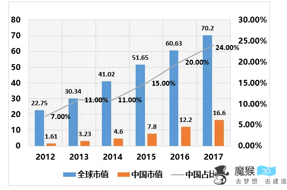 2012-2017全球及中國(guó)3D打印產(chǎn)業(yè)規(guī)模